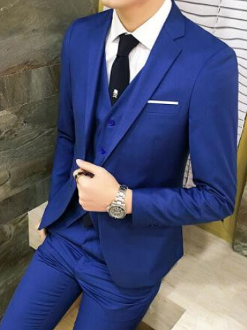 藍色西服也是近幾年逐漸變得受歡迎的一種顏色,當然藍色西服也分著不同的藍色種類,例如深藍色、暗藍色、亮藍色等等,給人沉穩正式的感覺之外,還給人了一種活潑年輕的動力感,讓人覺得顏色不會很單一,增加了一份不一樣的魅力與氣質,給人一種華麗尊貴的氣質感,搭配一些淺色系襯衫,像是白色、淺藍色、淺灰色等等,都會讓人覺得型男十足,加深人們的影響分,為婚禮點綴出一種青春與活力的視覺感。