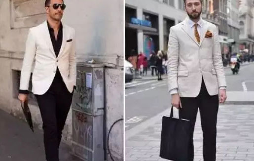 4、白色單西+黑色休閑褲子,這是經(jīng)典的休閑紳士風(fēng)范。黑白配永遠(yuǎn)是經(jīng)典搭配,米白色比起純白色更顯柔和,上身白色也有拉長(zhǎng)的效果。
