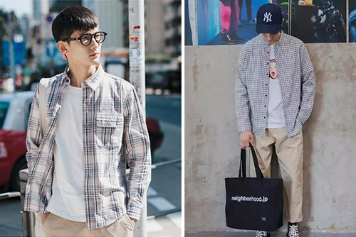 男格子襯衫搭配款式圖