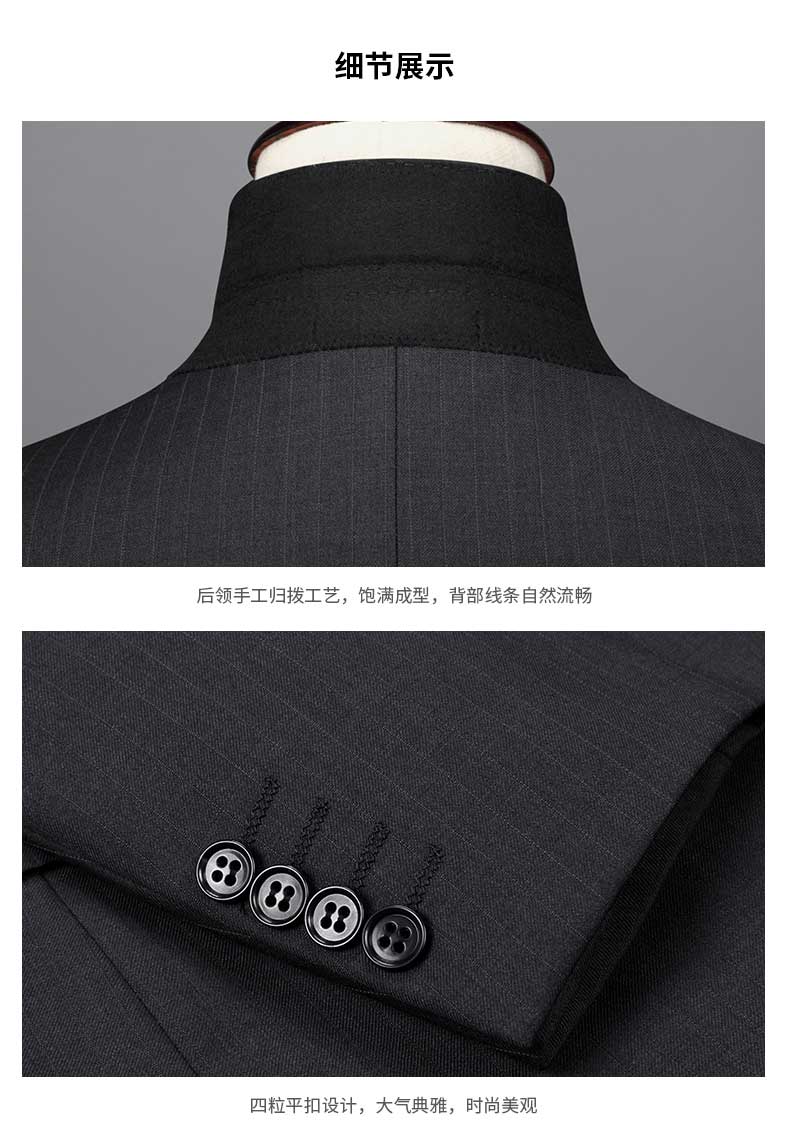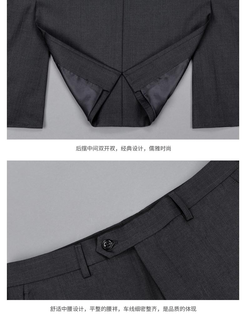 男士西服設計亮點男士西服馬甲正反面展示男士西服褲子正反面展示男士西服駁頭細節圖男士西服內里細節圖男士西服下擺細節圖男士西服褲子細節圖