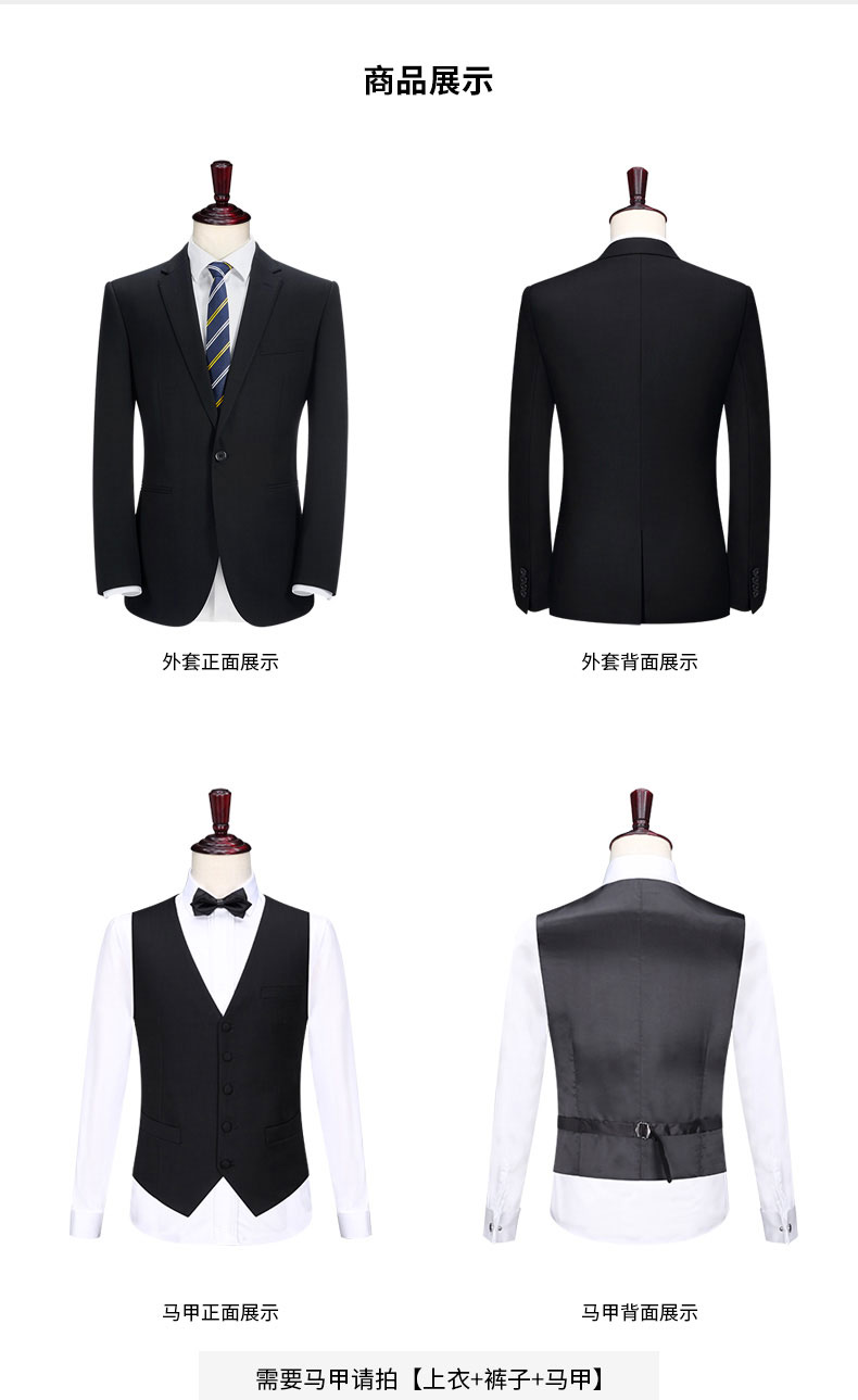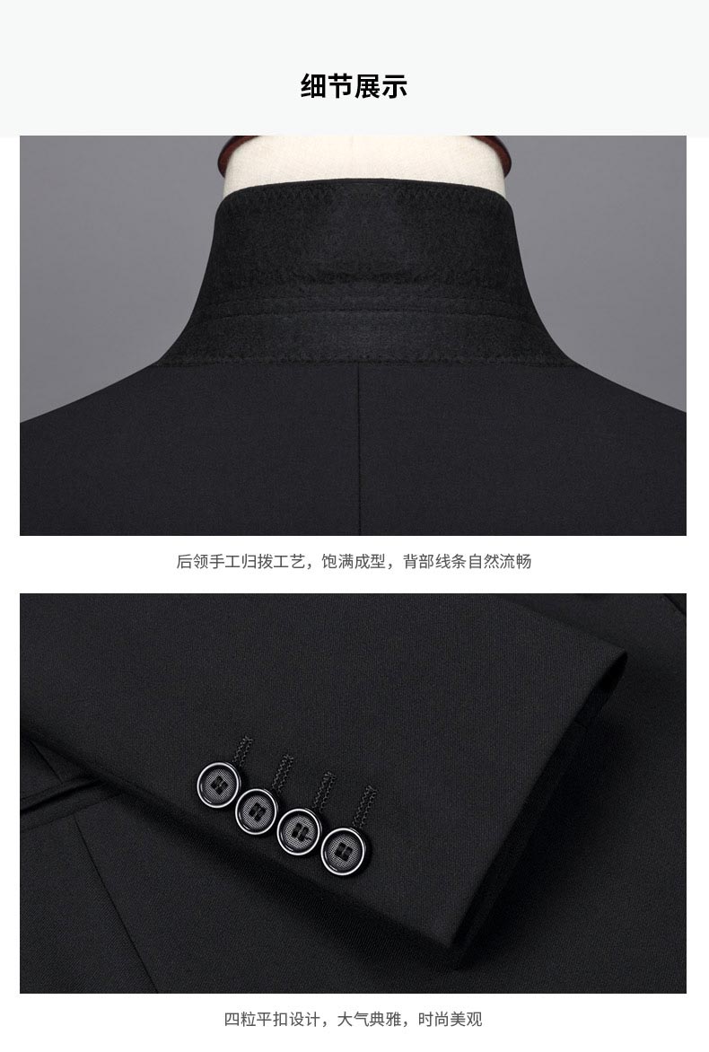 西服上衣工藝說明圖西服上衣及馬甲正反面款式圖西褲正反面款式圖西服駁頭細節圖西服內里細節圖西服下擺及西褲腰頭細節圖西褲款式細節圖西褲后袋及褲腳細節圖