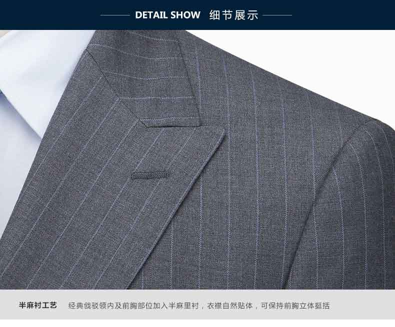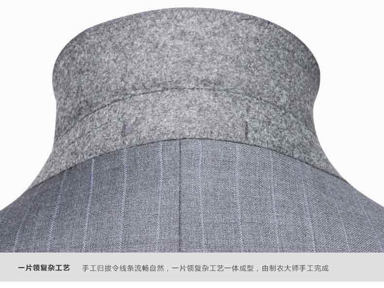 雙排扣西服正面工藝說明西服背面工藝說明圖西服領子細節圖西服駁頭細節圖西服袖山細節圖西服口袋細節圖西服袖口細節圖