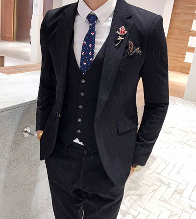 3、整體的搭配。對于西服來說,襯衫和領(lǐng)帶是標(biāo)配。可根據(jù)不同的穿著場合進(jìn)行合理搭配。例如黑色毛料西服,最適合會議、商務(wù)等較嚴(yán)肅的場所。可配淺色系襯衫,配以藍(lán)、灰色系領(lǐng)帶;灰色西服時,襯衫仍以淺色系為主,領(lǐng)帶的顏色則可明亮一些,如灰、黃色等。當(dāng)然,我們的設(shè)計(jì)師還會告訴你最經(jīng)典的搭配,淺藍(lán)色或白色襯衫配純色或有明亮圖案的領(lǐng)帶。