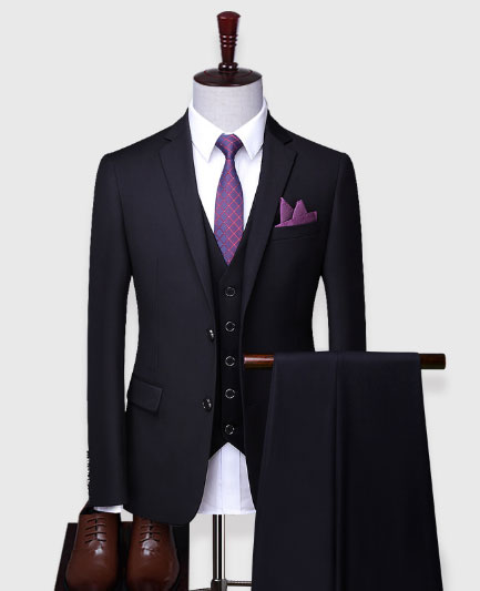 定制西服的色彩搭配可以分為基本色搭配、格子搭配、對比色搭配。具體言之,基本色搭配多是同類色或者無彩色,比如黑白色,黑灰色等搭配。不同的搭配可以給人不一樣的感覺。格子搭配則要根據上衣的多重色彩中挑選下身的色彩進行合適的搭配。對比色搭配是個比較容易把握的原則,就是褲子的顏色要比上衣的顏色淺,這樣在視覺上顯得身高比較高。但要注意,搭配鞋子腰帶等需要盡量與褲子接近或同一色系。對于日常常見的西服顏色以下做詳細說明。