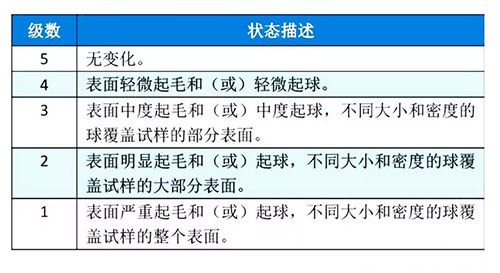 面料起毛、起球的評級,最高等級是5級,意味著在規(guī)定壓力和摩擦力的測試條件下,面料稍有發(fā)毛,但無起球,1級等級最低,意味著同等條件下,面料嚴(yán)重起毛、起球。